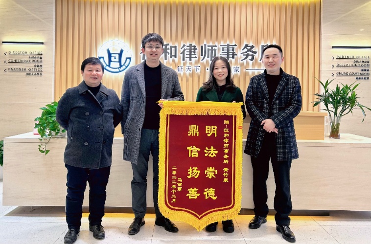 当事人马女士向征和律所黄竹康律师赠送锦旗