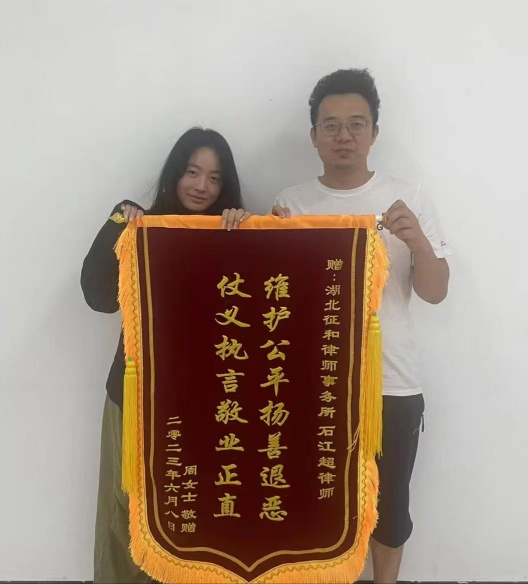 征和律所石江超律师收到当事人周女士锦旗