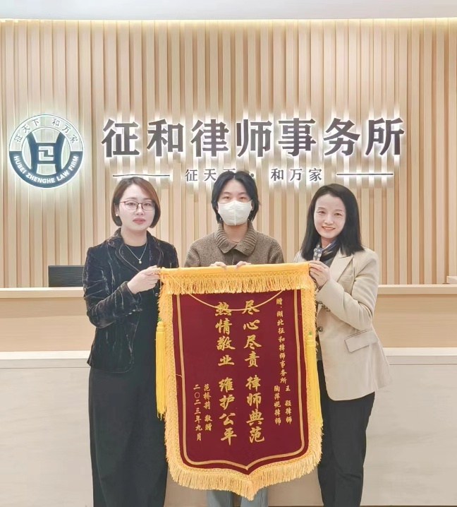 2023 年 9 月,当事人范某某走进律所会议室。他把一面红锦旗放在桌上,上面绣着“尽心尽责 律师典范,热情敬业 维护公平”。这面锦旗是送给陶萍妮和王颖两位律师的。